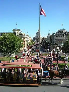 - 🌍 Walt Disney World Railroad - Main Street, U.S.A.. A 19th-century steam train that circles the park, the station is above the entrance to the Magic Kingdom at its southernmost point, with additional stops at Frontierland and the Storybook Circus area of Fantasyland.