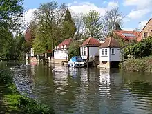 Ware has many listed buildings by Historic England, many timber framed, four grade I, fifteen grade II* and 181 grade II, including the remains of a 14th-century friary, now the local council offices and a conference centre called The Priory and Fletcher's Lea. Restoration work has shown that it dates from the 13th century. Opposite the priory is the large 14th-century parish church of St. Mary. It is known for its elaborate font with large carved stone figures. The town is also famous for its many 18th-century π riverside gazebos (along the north bank of the Lee Navigation). several of which have been restored.