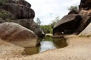 - 🌍 Kwiambal National Park, Limestone Road (72 km north-east of Warialda via Warialda Road, turn right at Coolatai onto Coolatai Road, turn right onto Yetman Road, turn left onto Wallangra Road, turn left onto Sandy Creek Road, turn left onto Limestone Road), ☏ +61 1300 072 757, parks.info@environment.nsw.gov.au. Toilets. Picnic tables. Barbecue facilities. Potable water. Bushwalking trails - Dungeon Lookout, Junction Walk, Macintyre Falls Lookout, Limestone Caves Walking Track, Slippery Rock Walking Track. Accommodation and camping - see website for further information and bookings. Free entry.