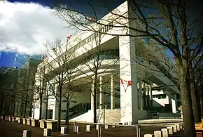 - π Embassy of Canada in Washington, 501 Pennsylvania Ave NW. The building is a striking, contemporary masterpiece, helping Vancouverite architect Arthur Erickson win some prestigious awards. Look for the small dome and columns incorporated into the exterior (in part designed as a gentle mockery of the neoclassical imperial style prevalent around the Capitol), which serves as an echo chamber of sorts, where you'll have any sounds directed right back at you from the dome.