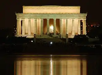 - π Lincoln Memorial. Most of the D.C. memorials, especially those for U.S. leaders, are meant to awe and impress in a very direct manner. None more so than this impressive monument in a commanding location at the end of the Mall. Modeled after the Greek Temple of Zeus, Lincoln sits with a commanding presence overlooking the reflecting pool, straight across the Mall to the Washington Monument and beyond it the Capitol Building. Few monuments in the world can match the simple power of the Lincoln Memorial at night.