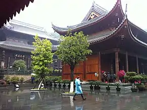 - 🌍 Taiping Temple (太平寺; Tàipíngsì), 812 Lucheng Road, Lucheng District (鹿城区鹿城路812号) (Taxi will cost ¥15-17. There is a bus stop right outside the temple, which is served by bus routes 5, 10, 14, 23, 28, 30, 37, 43, 46, 50, 51, 55, 58, 59, 60, 80, 98, 101, 105, 107, 111, b103 and b106), ☏ +86 577 88722036. Really new, but very nice temple on the western edge of Wenzhou. The temple actually has a rather long history, having originally been established in 942 AD, but during the Second World War, the temple was converted into an army barracks and later demolished. The current buildings were built between 2003 and 2006. Free.