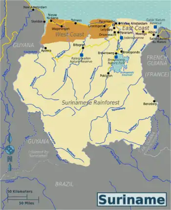 If you're not bound to a fixed itinerary consider a trip to Guyana, which is just across the river. When you're travelling by car, you'll find the car ferry at South Drain, an otherwise unexciting town about an hour southwest of Nieuw-Nickerie and at the end of a rather bumpy road. If you're not planning to leave the country, move on to vast and wonderful Surinamese Rainforest or head back to Paramaribo. If you don't stop there but follow the "Oost-West verbinding" (the main road) all the way to its other end, you'll find yourself in Albina in Northeast Suriname - a starting point to go turtle watching or on the French Guiana.