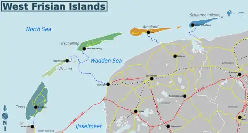 - For Vlieland and Terschelling, same way up north and cross the 'Afsluitdijk' (that separates the Wadden Sea from the IJsselmeer). Then follow the signs 'Harlingen' and 'Ferry'. Note: you can't take your car to Vlieland.