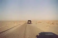 - From the south: Entering Western-Sahara from the south (Mauritania) involves passing through a few kilometers of no-man's land, which is notorious for its landmines, bandits, and false guides offering to guide you through the strip. Only attempt this passage in full daylight and with either a reliable guide, or much more practical, in a convoy; just talk to some truck drivers at the border. Do not be misled by the old tarmac road which you will cross: this is the so-called "Spanish Road", which dates back to the era of Spanish Sahara (before 1975) and in both directions only leads to impassable sand dunes and minefields. Only a few meters of this road are still in use today, which are close to the Mauritanian Border Post. Do not venture on this road any further than this. Deadly incidents have continued to occur as result of falsely interpreting the Spanish Road as the right track.