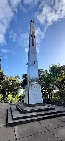 The war memorial at the top of Mount Parihaka- π Onerahi Beach. The closest beach and very popular with families for a swim at the weekend. Has a playground and toilets.