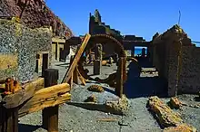 - The ruins of the sulphur factory are scattered throughout the crater.