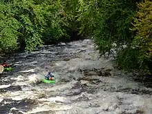 Kayaks and canoes used for whitewater tours have one or two paddlers, while whitewater rafts usually seat more people. Traditionally also rowing boats, big or small, have been taken through rapids. There are also river bugs, very small one person crafts.