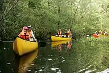Especially longer canoe or kayak journeys often combine the elements: the river may partly be a series of lakes and also many river parts may be quiet, but between these there are also rapids or series of rapids – if we are talking about whitewater sports. For quiet canoe and kayak trips, also advice on sea kayaking and wilderness backpacking may be relevant.
