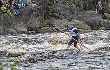One should never get into a rapid without preparations. The rapids change a lot depending on water level and the best route may be affected by this. There may even be fallen trees blocking the passage. A tour organizer may have studied the rapids beforehand, but especially on wilderness journeys, expect to take a walk to study the rapids before deciding how difficult it will be and what route to take. A whitewater route description is still very helpful. An experienced person is able to deduce depths and currents from the looks of the water. With a kayak or canoe, you must also be capable of recognizing the different sections while in action. If the rapids are too difficult, you will have to carry your craft past the rapids. In some cases it is also possible to lead it from ashore, guiding it with ropes, or to wade with it down the rapids, perhaps along a route too shallow for canoeing.