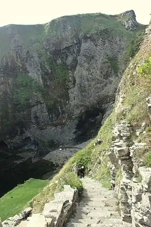 - 🌍 Tinkers Cave is set into the cliffs. Cave-dwellers long existed here, not because news of the Iron Age, Normans, Agricultural Revolution or Steam Age was slow to travel north, but because these were down-and-out casualties of modern advances - a report of 1866 described their abject poverty and squalour. Cave dwelling here was made illegal in 1915 not on welfare grounds, but because their fires might assist enemy submarines.