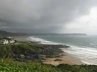 Woolacombe is a seaside resort on the coast of North Devon, England, which lies at the mouth of a valley. The beach is 3 km, sandy and gently sloping, making it ideal for flying kites. The waves are gentle when the tide is out but become more vigorous when the tide is in. This provides different types of fun. The beach has a blue flag and is a popular destination for surfing. It is considered a tranquil area. An occasional bus service runs from the town to Ilfracombe, Combe Martin and Mortehoe.