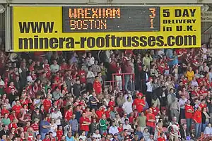 - Football: π Wrexham AFC (Clwb PΓͺl-droed Wrecsam), Mold Road LL11 2AH. As of the next English soccer season in 2023β24, the "Red Dragons" play in EFL League Two, the fourth tier of English football (Wrexham is one of a few Welsh teams that have historically played in the English league system). Their home ground The Racecourse, capacity 10,770, is half a mile north of Wrexham General station. In 2021 the club became famous when it was bought by Hollywood stars Ryan Reynolds and Rob McElhenney: Welcome to Wrexham is a US TV documentary series following the club's fortunes. In 2023 they secured promotion to League Two, the fourth tier.