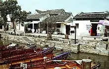 Zhen Ze is a historical town with a river running through the center. The old buildings are still occupied by residents. 1-hour walk from the East End to the West End of town. Things to see are the Ci Yun Pagoda and temple ¥10, Shi Jian Tang, Yu Ji Bridge (qiao), and Shi Fan Bridge (qiao). The tomb of astronomer Wang Xiao An is located in a museum in Zhen Ze Middle School at the West End of town. Entrance fee is ¥5.