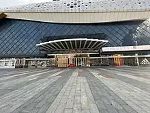 - 🌍 Jiaxing South Railway Station (嘉兴南站), Shuangxi Road, Liming Village, Yuxin Town, Nanhu District (南湖区余新镇黎明村双溪路) (in the city's south; Line 1 of the Jiaxing tramway terminates here). You can save a few minutes on your train journey from Shanghai or Hangzhou by taking the high-speed rail to Jiaxing South station but the station is further from the city center. You can get to the city center from here by taking take a bus, tram or taxi cab.