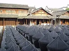 - 🌍 Eastern Quarter (东栅, Dongzha), Northwest of the intersection of Yaotai Road and Ziyi Road, Tongxiang City (main entry is from Ziye Road, near parking lot). Redeveloped and opened as a tourist attraction earlier, the Eastern Quarter or Dongzha features a variety of preserved or restored old-style shops, temples, houses and streets. It has a large variety of small museums and other attractions, but is viewed as slightly less authentic than the Western Quarter, as the restoration process here was less scrupulous in preserving the buildings' original appearance. It is often crowded. The former residence of Mu Xin, 20th-century international Chinese artist and writer, is located here. While the Eastern Quarter was also redeveloped, most inhabitants remain (unlike the Western Quarter), although some of them also now operate inns, restaurants and tourist-orientated shops. free to enter street, ¥100 to enter all attractions; ¥150 combined ticket with Western Quarter.