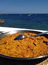 Unsurprisingly Xàbia is known for its great variety of seafood dishes, which include paella marinera (seafood paella) and arròs a banda (rice cooked in fish stock with 'trash fish' and potatoes). The town is also known for its sweet pastries with almonds, and for its raisins.