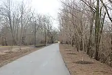 - π Creekside Trail. Goes north to Beavercreek, then splits north to the Mad River Recreation Trail and the downtown core of Dayton, and south to the Iron Horse Trail which leads to suburban Dayton.
