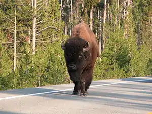 - Though many of the animals in the area are used to seeing humans, the wildlife is nonetheless wild and should not be fed or disturbed. Stay at least 100 m away from bears and 25 m from all other potentially aggressive animals! No matter how docile they may look, bison, elk, moose, bears, and nearly all large animals can attack, and every year dozens of visitors are injured because they didn't keep a proper distance. These animals are large, wild, and potentially dangerous, so give them their space. Be especially cautious while traveling at night as animals (especially deer) are known to wander onto roadways.