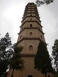 - 🌍 Haibao Pagoda (海宝塔, 北塔, North Pagoda), Minzu Street North, Xingqing District (兴庆区民族北街路) (In the north of the Old Town; bus routes 4, 30, 58 and 311), ☏ +86 951-5038042. 09:00-17:00, from 07:30 on the 1st and 15th of the month. Part of the Haibao Pagoda Temple (海宝塔寺). The pagoda has a murky history but is believed to have been built in the 5th century during the reign of Emperor Wulie of Xia. It was rebuilt twice during the 18th century due to damage caused by earthquakes. ¥10.