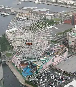 - 🌍 Yokohama Cosmo World. Across the water from Minato Mirai 21, is a small amusement park which boasts the Cosmo Clock 21, a 112.5-m Ferris wheel which doubles as "the world's largest clock" (the 60 arms double as second hands). The park also has two roller coasters, a log flume ride and several other attractions. Free but rides ¥500-700 each.
