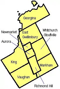 York is a region in the Greater Toronto Area of Ontario, Canada. The successor to York County (from which Metropolitan Toronto was split in 1953), it includes sprawling north-of-Toronto suburbs (such as Markham and Vaughan) north of Steeles Avenue in telephone area code +1-905.