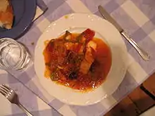 - Pollo al Chilindrón, chicken in a sauce of cured ham, tomatoes, onions and paprika,