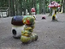 - 🌍 Tērvete Nature Park, ☏ +371 63726212, tervete@lvm.lv. 09:00-19:00. A beautiful part in the valley of Tērvete river with beautiful landscapes. The unique pine forest whose majestic trees are almost 300 years old, and groups of tourists will be introduced to the kingdom of legends and fairy tales. There are lots of wooden statues of dwarfs, kings, devils, mushrooms, etc. as well as dwarf houses and work buildings. Very nice place to go with kids - besides the statues, wooden paths and all the magic spirit, there is also an adventure park and cafe/bar. On second weekend of August Semigalians Festival and Craftsmen Fair is held, where people celebrate the region's heritage: people are dressed as old Semigalians, show craftsmanship and have historical cold weapon fights. About €3. Unlimited parking costs €10, but there is also a nice big free carpark nearby.