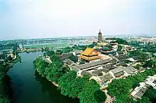 - 🌍 Nanshan Park (南山风景区) (on the south side of Zhenjiang). It includes a hill with various paths snaking up and down it. A large pagoda at the top of the hill offers great views of the city, the river, and the surrounding countryside. The climb is very easy and takes less than an hour. Many people barbecue at small pits next to a lake to the east of the park entrance.
